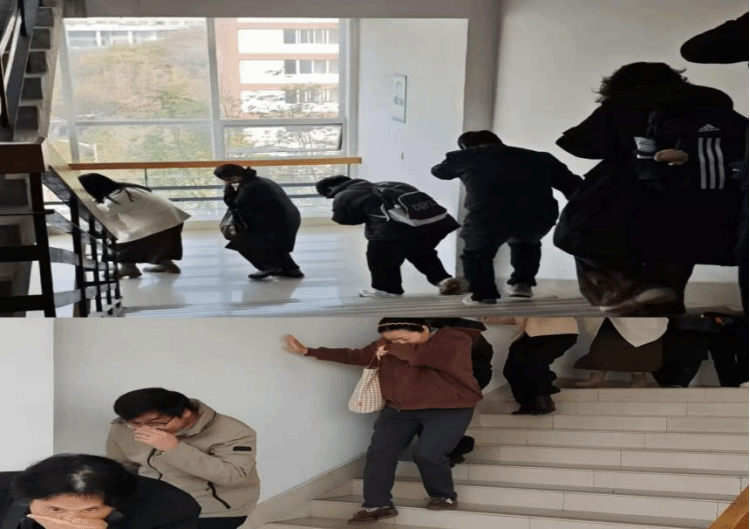理论培训后,教员邀请师生参加疏散演练和灭火器操演。随着火灾警报响起,全体师生掩住口鼻,弯腰低姿沿着安全通道快速有序地撤离。整个疏散过程高效顺畅,达到了预期效果。接着,参训师生亲身体验了灭火器的用法,掌握了干粉灭火器“提、拔、握、压”的操作要领,提高了面临火灾的自救能力。